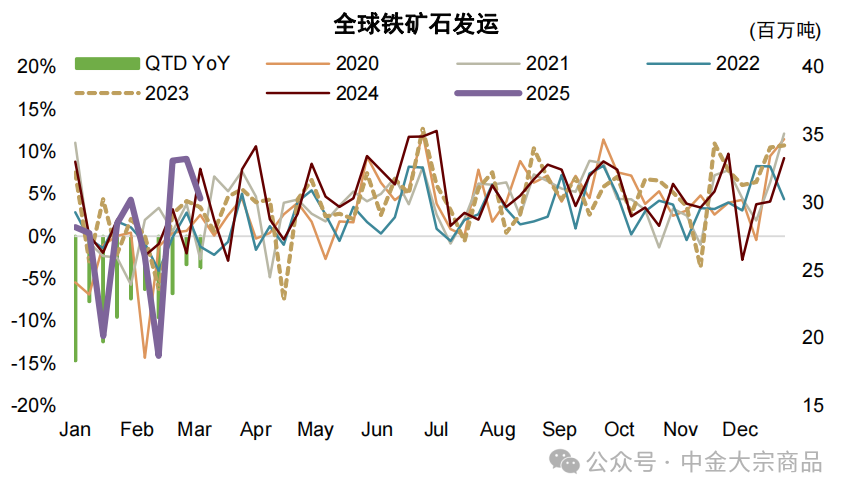 图表:全球铁矿石发运量