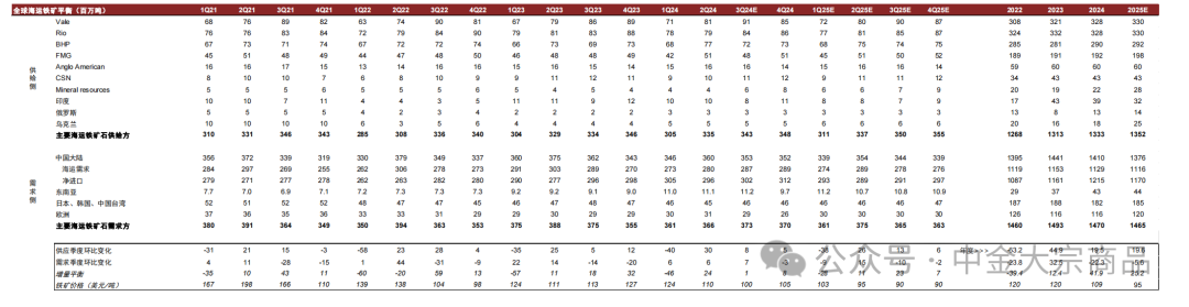 图表:全球铁矿石平衡表