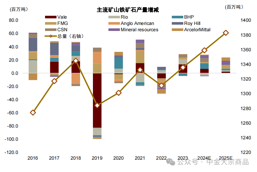 图表:主流矿山铁矿石产量增减