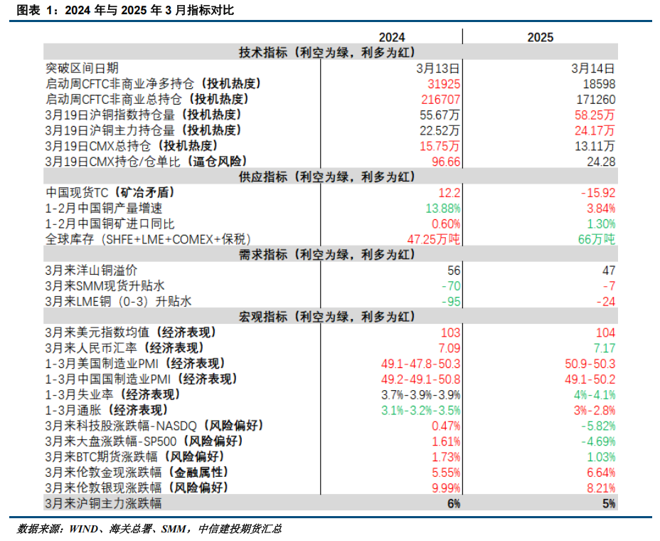 “弱预期”则是来自于宏观的不确定性。当前海外经济数据表现还可以,但趋势是偏弱的,因此盘面可见沪铜由前期的近月连三的Flat Contango、更远月的Back结构,转变成了全面的Back结构,而2024年同期盘面始终维持着Normal Contango,对应PMI在2-3月的修复。从交易线索来看,虽然美联储释放偏鸽救市的信号改善了流动性预期,令美股、比特币等风险资产有所止跌,但其下调了宏观经济增长预期、上调了失业预期,结合今年来海外经济数据的放缓趋势,进一步加剧了市场对经济前景的担忧,令期铜展现近月强、远月弱的结果。