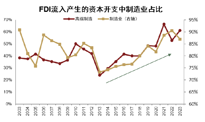 图表5:特朗普1.0时期,FDI流入带来的资本开支中制造业占比大幅提升