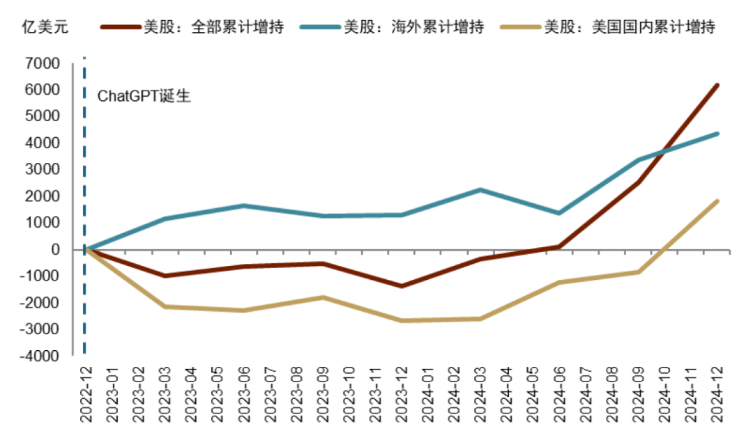 图表16:ChatGPT诞生以来,外资是美股净买入的主力,累计占70.2%