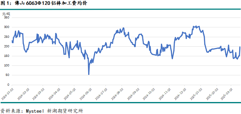 今年下游铝型材消费恢复滞后。往年正月初十一般都基本复工,今年正月十五才陆续复工,工人才慢慢到位,下游工厂订单恢复不及预期。铝棒加工费一直在100元/吨出头。