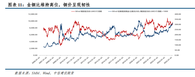 2025年特朗普上任至今,美元受到压制引发黄金和有色等商品继续走高。2025年1月美元指数从110贬值到2025年3月的103。黄金及铜资产价格涨幅明显。