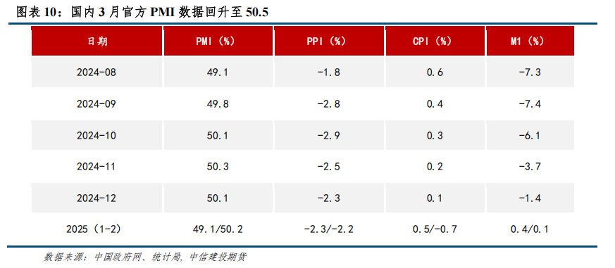 美国:关注二季度美国对全球主要国家对等关税的执行情况及美元走势,短期关税政策引发部分品种地区间供需不平衡,长期来看利空商品需求。国内方面,一季度投资和消费数据逐步回升,但修复力度偏弱,不宜对“金三银四”有过高期待。同时,若二季度美国对商品加征关税,出口或有一定影响。