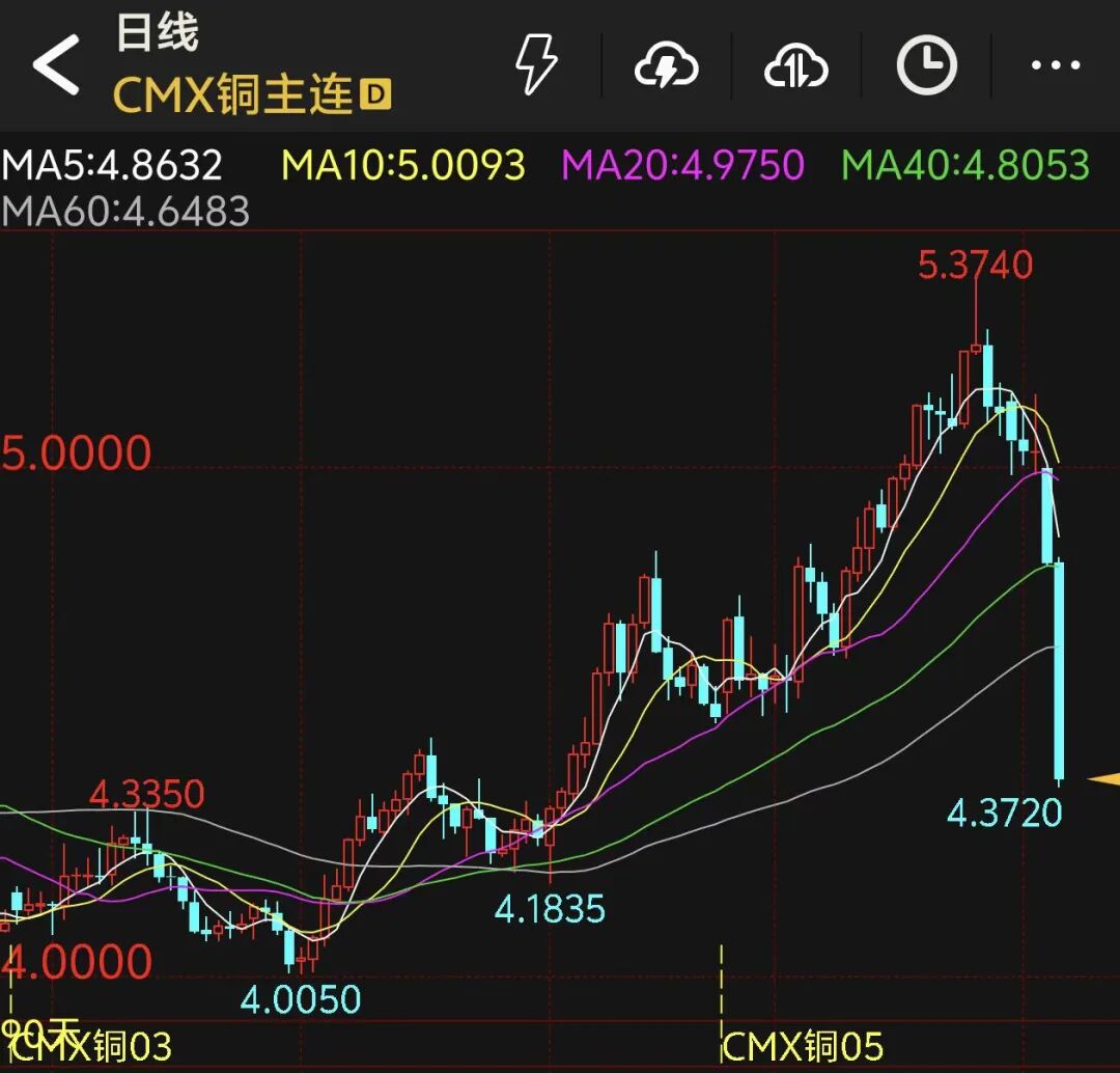 外盘铜市场在关税冲击影响下出现大跌,其中LME铜跌幅达8.95%,COMEX铜跌幅达10.21%。
