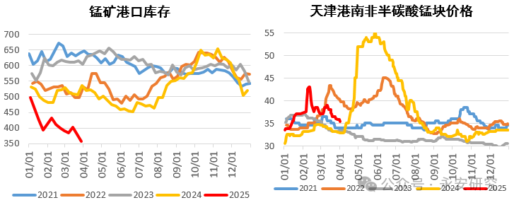 从锰矿来看,二季度海外发运有望摆脱一季度天气扰动的影响,这将使得我国锰矿到港量逐步恢复至正常状态,疏港却可能受到下游减产拖累,整体或呈现供稳需减格局,高价销售锰矿的难度可能有所上升。当前不确定性因素较多。South32旗下澳洲矿山预计5月恢复发运,相关动态保持关注。