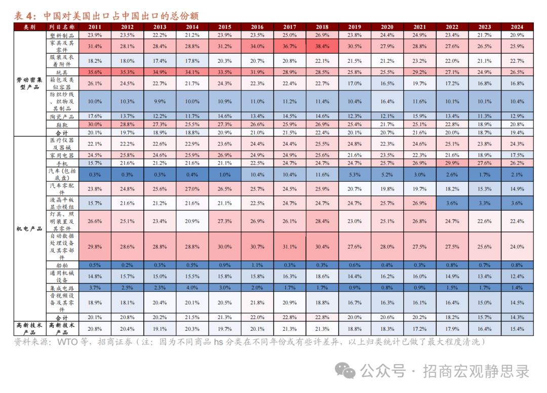 除了总量测算,我们通过hs6分位代码的匹配,对劳动密集型产品、机电产品和高新技术行业产品进行详细拆分,探究此次互加关税对哪些行业影响比较大。