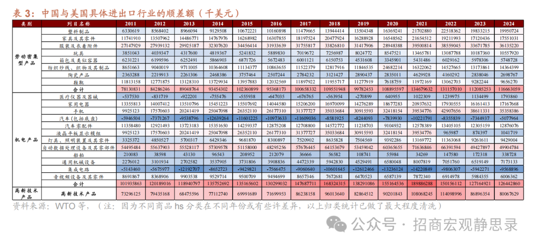 特朗普此次加征关税的直接根据是美国对中国的贸易逆差较大,从贸易逆差额来看,机电产品>劳动密集型产品>高新技术产品。