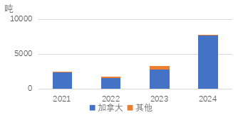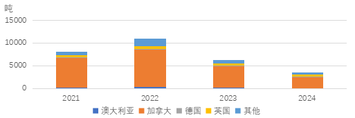 根据美国国际贸易委员会数据,2024年美国进口镍废碎料4.74万吨,其中加拿大、英国、墨西哥、法国等是最主要的来源。军工需求拉动合金铸造领域需求,镍废碎料、电镍和镍粉是这一领域重要原料。