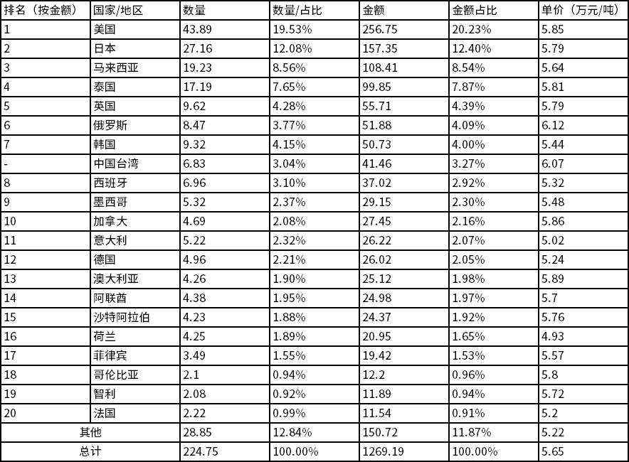 表1:中国铜精矿进口数量、金额及单价一览表(2024年)