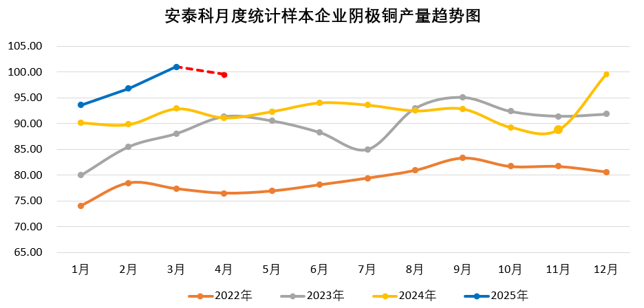 2025年3月样本企业阴极铜产量统计(单位:万吨)