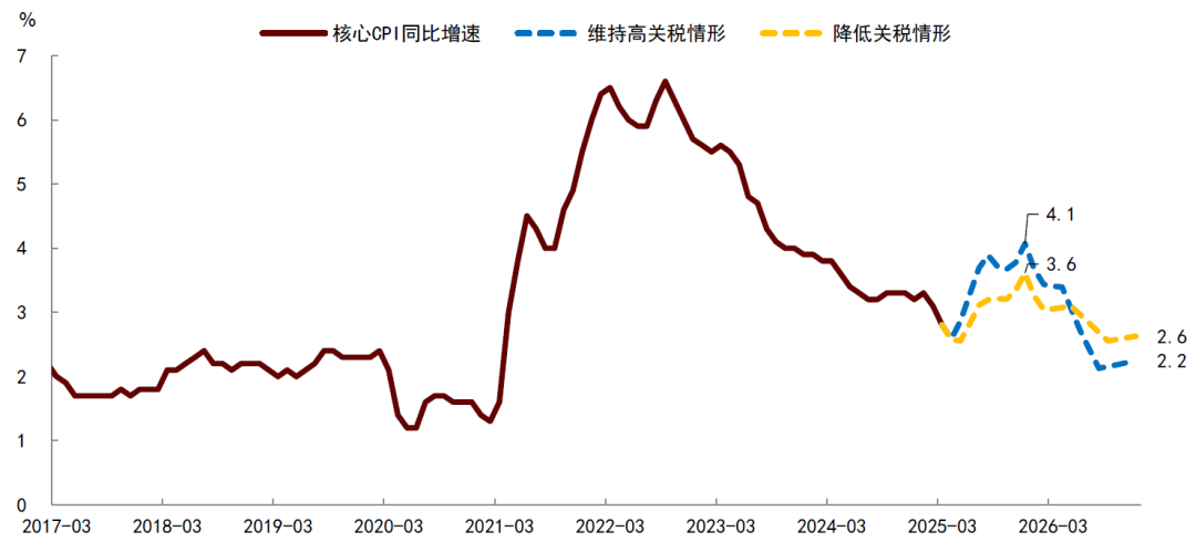 图表:不同关税情形下,美国核心CPI通胀的路径