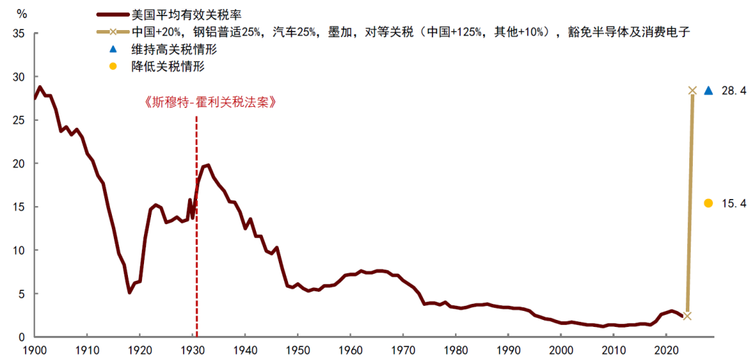 图表:未来关税的两种情形:维持高关税 vs 降低关税