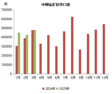 2025年1-3月份,我国进口135.7万吨钛矿砂,同比增长15.5%。