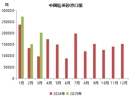 2025年1-3月份,我国进口62。7万吨锆英砂,同比增加33.5%。