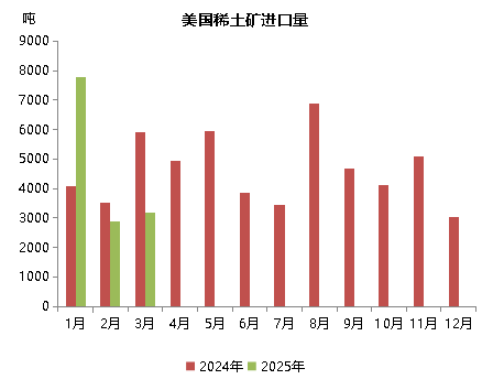 一、2025年1-3月美国稀土金属矿进口量增量萎缩