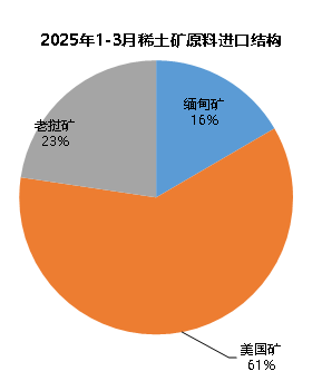 从稀土原料的进口国别来看,今年以来,美国矿的份额增加明显,而缅甸矿的份额大幅萎缩。1-3月,我国从美国进口的稀土原料占比达61%,而缅甸矿占比减少到16%。