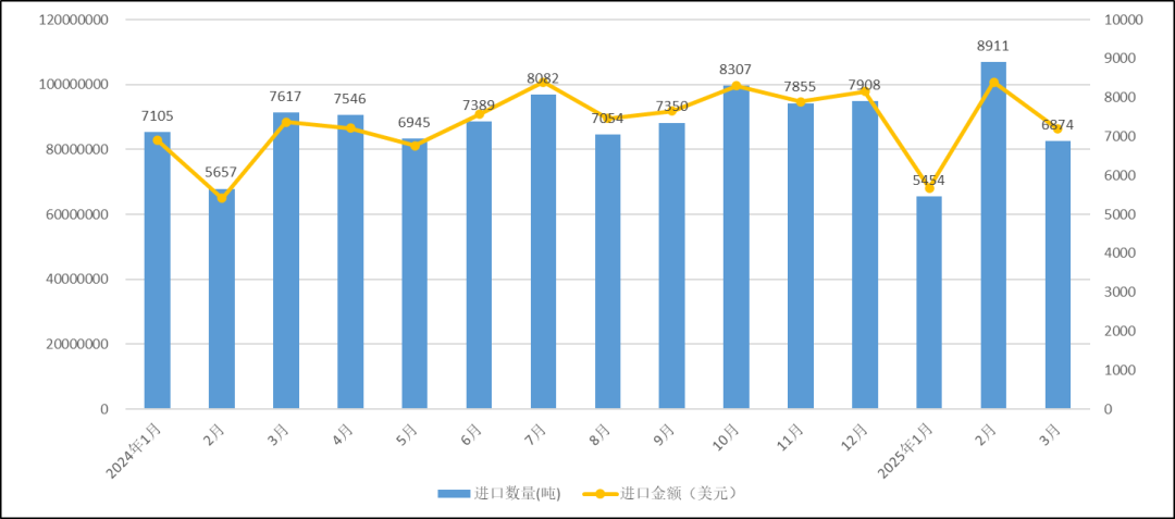 1-3月,对外贸易总量为4.96万吨,同比增长3.3%,贸易金额为5.55亿美元,同比增长10.3%,其中,进口总量为2.1万吨,同比增长4.2%,出口总量为2.8万吨,同比增长2.7%。
