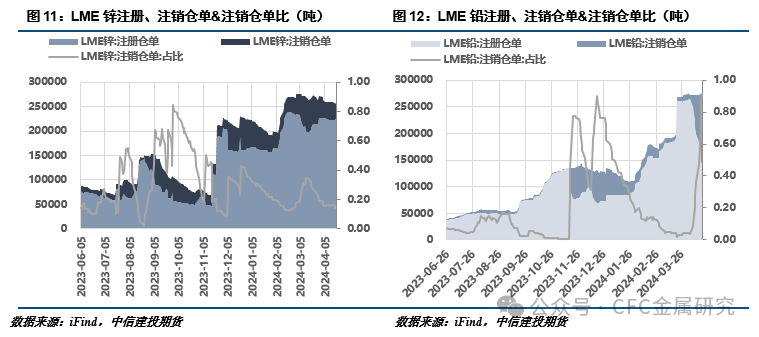 4、库存情况:下游采买减弱,铅锌由去转累