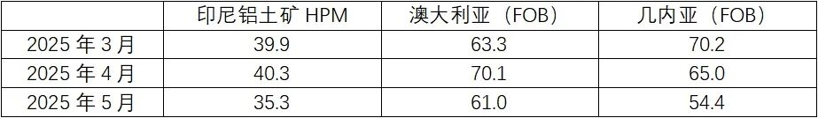 表3:印尼铝土矿销售基准价格与澳大利亚、几内亚价格对比 美元/吨