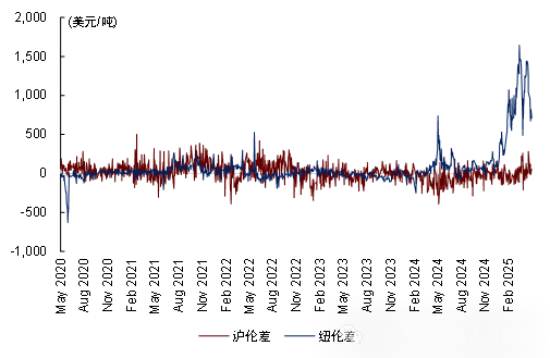232关税套利交易可能已经接近尾声。截至5/12日收盘,COMEX-LME溢价已由最高的16.6%下降至7.4%。COMEX库存已上升至15.9万吨,同时LME库存已下降至19.2万吨,两者库存水平已相当接近。且根据LME仓单报告,截至4月底俄铜在LME仓单中的占比已高达51.6%。我们认为当下套利交易进一步演绎的空间可能较为有限。美国与美国以外的铜套利交易在某种程度上可以看作需求的前置,在关税正式落地后,美国国内的较高的铜库存可能压制铜价,这在当前的大Back结构中已得到体现。