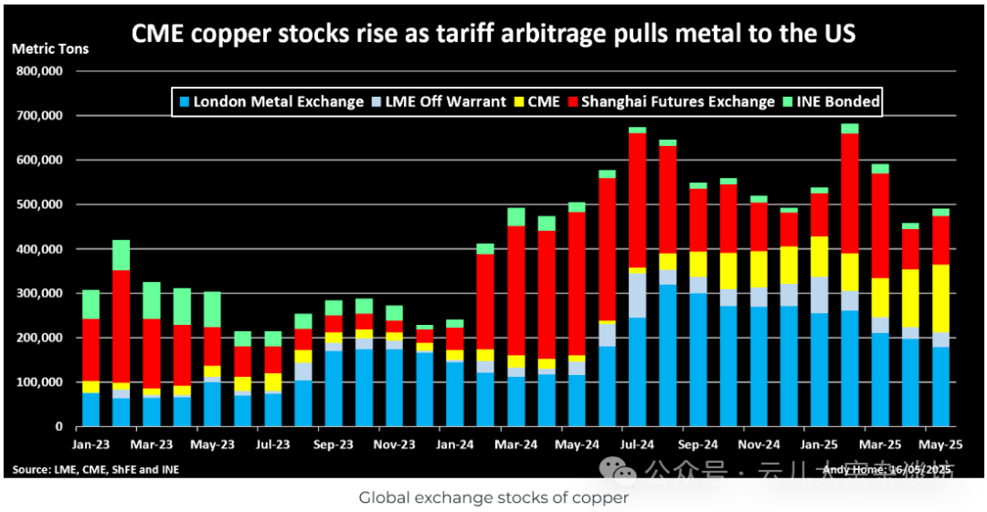 一时间,CME与LME之间的价差拉大至超过每吨1600美元,相当于LME价格的17%,这种“美国铜关税溢价”一度成为全球铜市场的套利焦点。