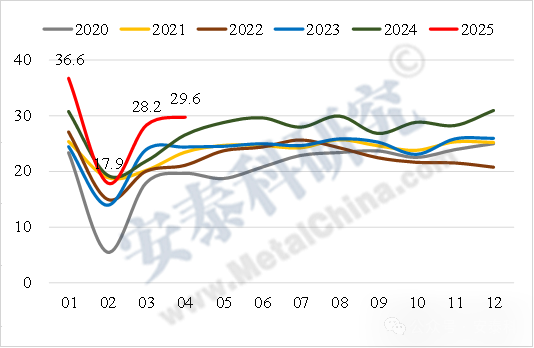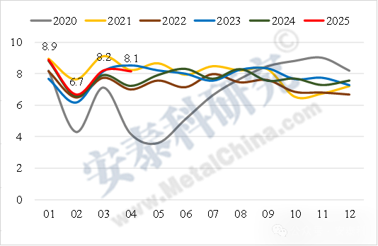 图5 2020-2025年我国废铝月度进口量(万吨)