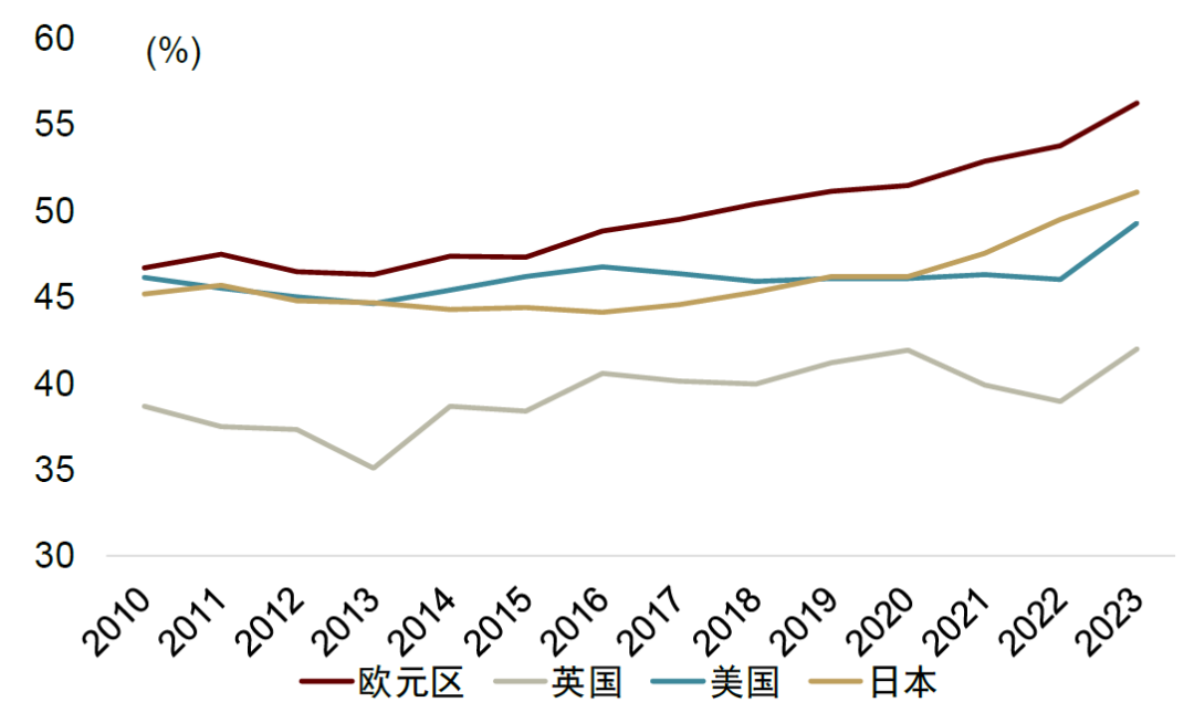 从中国经常项目来看,人民币受到支撑,但部分贸易伙伴却相反。而从资本项目来看,人民币和其他主要经济体过去几年都面临资本外流压力。中国处于金融周期下半场,房地产价格下跌,股市下行,也给人民币带来贬值压力。与此同时,美国金融周期处于上行阶段,财政力度也比较大,股市整体表现也比较出色,吸引资本流入。日欧相对而言,资产价格可能没有美国亮眼,对资本吸引力弱于美国。2020-2023年,日本、欧元区金融账户逆差(资本外流)占GDP的比例平均值分别为2.5%、1.7%,对汇率形成贬值压力。也就是说,中国经常项目支撑人民币汇率,资本项目压制人民币汇率,二者的综合影响是人民币对美元贬值。而部分中国贸易伙伴面临的情况是,经常项目走弱,对其本币汇率带来贬值压力,而资本项下也面临类似情形,综合来看,其汇率对美元较人民币贬值更多。不过,我们也要注意到,中国资本管理相对比较有效,也导致人民币汇率波动相对较小。