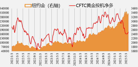 美联储延续“先观望再行动”的审慎基调,5月FOMC会议纪要鲜有增量信息,降息落地时点的整体后移对黄金而言压力大于提振。值得注意的是,今年票委、传统鸽派官员、芝加哥联储主席古尔斯比观点上开始转向与美联储理事沃勒基调相一致,淡化关税不确定性并明确支持年内降息,联储内部鸽派力量获得边际加强。