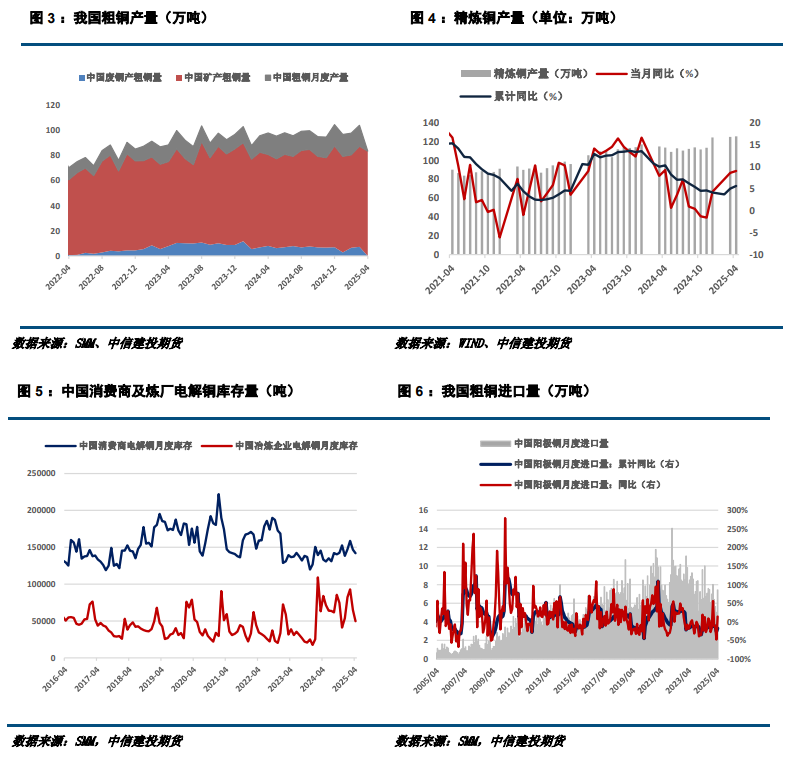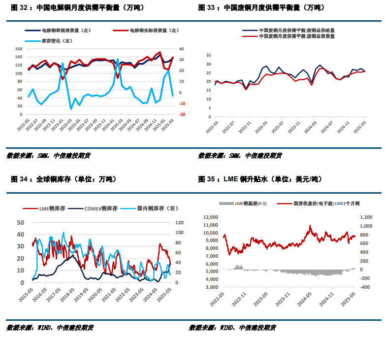 6月年中冶炼检修+终端淡季,铜价波动性常规性趋弱,但特别的是今年需密切关注关税带来的宏观预期反复与需求前置的强度。宏观方面,海外逆全球化的关税政策对经济数据的负面影响尚未充分体现。同时,6月是对等关税暂缓执行的最后一个月,海外关税谈判或对铜价波动产生影响。供需方面,强现实给予铜价高中枢,尤其在供应短缺、需求抢出口窗口的支撑下,铜价在淡季中具备更强的韧性。从全球贸易商、终端行业抢运、抢出口的势头来看,需求前置的持续性与强度或将成为铜价高位持续时间与高度的重要驱动。