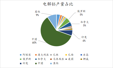 全球生产格局:据USGS数据,2024年全球电解铝产量为7200万吨。其中我国年产量为4300万吨,毫无疑问,我国电解铝产量依旧是占据全球第一的位置,占全球产量高达60%;其次则是印度,年产量为420万吨,占全球产量的6%;俄罗斯和加拿大年产量分别为380和330万吨,皆占全球产量的5%。