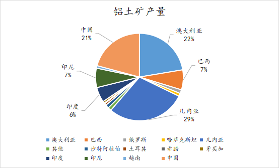 全球储量和产量:据USGS的数据,2024年已勘察的铝土矿储量中,几内亚储量为74亿吨,占全球储量的25%;澳大利亚储量为35亿吨,占全球储量的12%;越南储量为31亿吨,占全球储量的11%;印尼储量为28亿吨,占全球储量的10%;而我国储量为6.8亿吨,仅占全球储量的2%,该资源储量并不出众。产量方面,情况则有些许差异,2024年几内亚产量为1.3亿吨,占全球产量的29%,依旧占据第一;澳大利亚产量为1亿吨,占全球产量的22%;而我国产量为9300万吨,占全球产量的21%,排名第三;巴西和印尼产量分别为3300万吨和3200万吨,皆占全球产量的7%。
