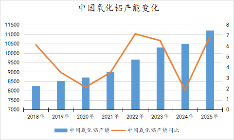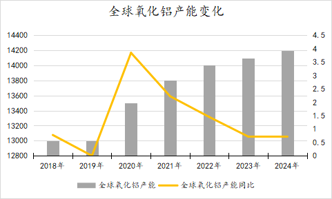 氧化铝产能变化:据Mysteel数据,自2018年以来,我国氧化铝产能变化基本维持快速扩张态势,仅在2020和2024年产能扩张相对较慢。截至2025年4月的数据,我国氧化铝建成产能为11210万吨,同比增长6.86%。而在去年年底的时候统计得出,2025年全年我国氧化铝新投产的氧化铝产能为1320万吨。全球氧化铝产能变化方面,情况则大有不同。据USGS数据,2024年氧化铝产能同比增长0.71%,自2021年同比增速逐年下降。而2025年海外新投产的产能项目有5个,全部集中在印尼,总计460万吨,与我国相差甚远。综合来看,近几年我国氧化铝产能扩张远超海外,大部分的新建产能都来自于我国。