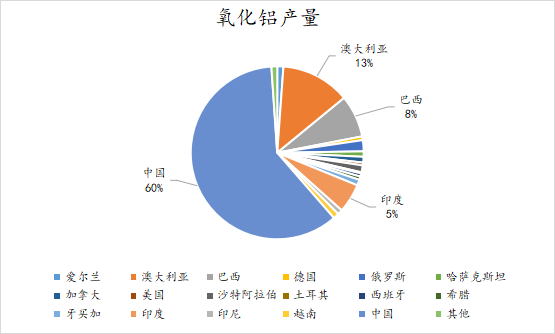 全球生产格局:据USGS数据,2024年全球氧化铝产量为1.42亿吨,其中我国氧化铝产量为8400万吨,占全球产量高达60%;澳大利亚产量为1800万吨,占全球产量的13%;巴西产量为1100万吨,占全球产量的8%。
