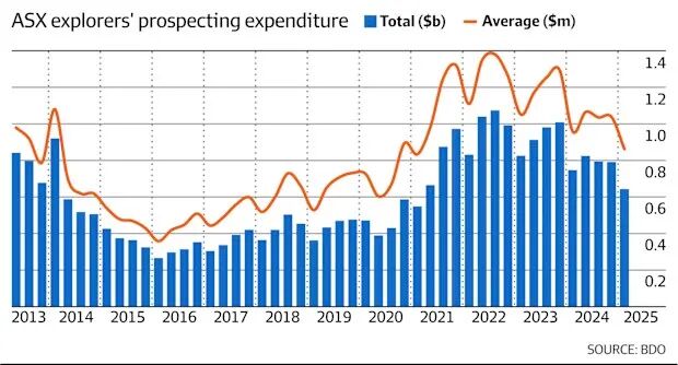 根据咨询公司BDO的数据,截至3月31日的三个月里,勘探支出降至6.4352亿澳元。这是自2021年6月以来的最低水平,较上一季度下降了19%。