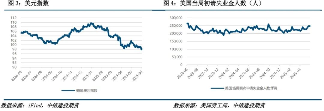 美国方面,通胀压力企稳,特朗普继续施压降息。经济数据方面,美国上周初请失业金人数录得24.8万人,为2024年10月5日当周以来新高;预期24万人,前值由24.7万人修正为24.8万人。有分析称,这些数据可能是受到学年结束、学校放假的影响。美国最新通胀数据仍保持温和。美国劳工部数据显示,5月CPI同比增长2.4%、环比增长0.1%,剔除食品和能源价格的核心CPI同比上涨2.8%、环比增长0.1%,均低于预期。美国5月PPI同比增长2.6%,符合预期,前值增长2.4%。美国5月核心PPI同比增长3%,低于预期值3.1%,前值为3.1%。数据显示,美国5月生产者价格涨幅保持温和,因商品和服务成本升幅有限。尽管到目前为止,提高关税对美国人的影响不大,但经济学家认为,随着企业希望防范利润率进一步走软,价格压力将在今年下半年加大。CPI数据公布后,美国总统特朗普呼吁美联储将利率下调一个百分点。华尔街交易员也加大了对美联储降息的押注,基本预计今年将降息两次,利率互换显示交易员预计美联储在9月份前降息的可能性为75%。但美联储下周议息会议或继续按兵不动。