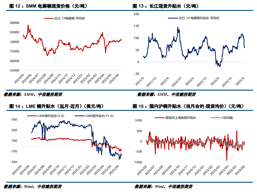 理由:贸易担忧缓和,地缘冲突加剧不确定性。中美经贸磋商顺利结束,双方在日内瓦经贸的基础上达成协议框架,短时间贸易摩擦风险缓和。但伊朗以色列冲突不断升级,战事带来的避险情绪与通胀风险(霍尔木兹海峡封锁风险)加剧了经济前景的不确定性,宏观对铜价仍存在压力。