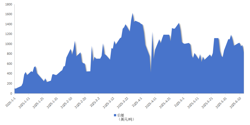 图1 2025年1月以来COMEX-LME铜期货价差(单位:美元/吨)