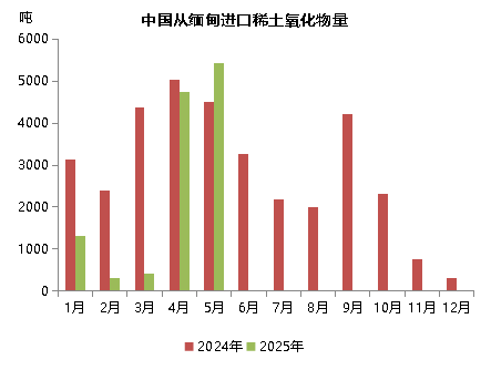 二、2025年1-5月份东南亚稀土矿进口量进一步恢复