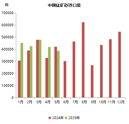 2025年1-5月份,我国进口216.4万吨钛矿砂,同比增长12.4%。