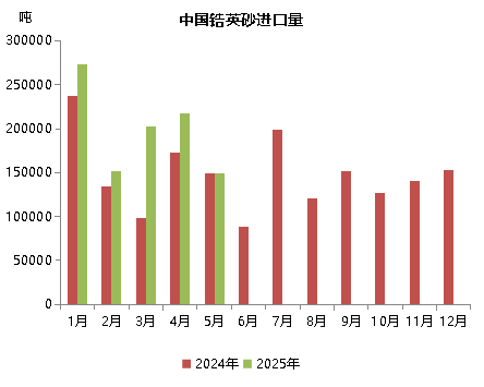 2025年1-5月份,我国进口99.3万吨锆英砂,同比增加25.4%。