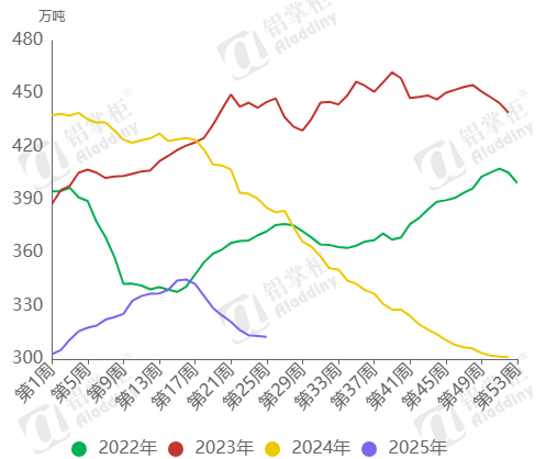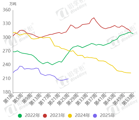 图11:2022-2025年全国非铝行业氧化铝消纳量走势图
