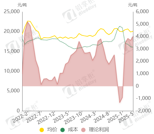 阿拉丁(ALD)调研统计:2025年电解铝行业利润可观,由2024年12月亏损千元转向盈利3000元/吨以上。