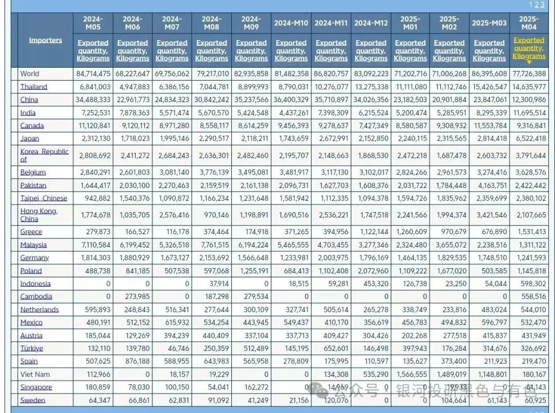 由于中国对美加征关税后,国内废铜供应紧张。但站在全球的角度来看,废铜的供应并没有实际的减少,更多的还是供应错配。从美国的出口数据来看,4月出口废铜7.77万吨,较3月减少0.87万吨,整体仍处于正常区间,其中出口到中国的量从2024年平均2-3.5万吨万吨骤降到1.23万吨,取而代之的发往泰国、印度、日本的量出现了较大幅度的增长,出口到泰国的量相比2024年增长了一倍,出口印度的量从2024年平均0.4-0.7万吨的量增加到了4月的1.17万吨,日本从0.2万吨增加到了0.6万吨。据悉美国废铜供应商已经松口,部分同意用LME计价。