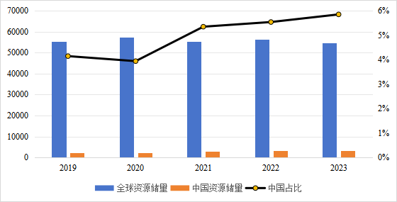 从世界黄金协会公布的数据看,2023年全球黄金资源储量54770吨,中国资源储量约3204吨,全球占比5.85%,较2019年提高4.71个百分点。