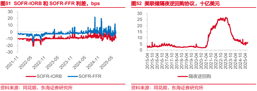 从量的角度,截至7月9日当周,美国金融流动性较为宽松。一是当周受《美丽大法案》通过影响,市场对于后续财政支持态度较为乐观;二是受周三“对等关税”延期至8月影响,金融市场呈现出股债双击的态势。我们跟踪的美国金融流动性指标在本周增加854亿美元,从美联储负债端看,主要受TGA支出和隔夜逆回购账户提取的影响。后续关注美国财政部三季度国债发行计划,若财政部预计三季度美债净发行额度远超预期且美联储不准备就流动性问题“救市”,或将银行系统准备金率降到12%以下,即脱离“充足准备金水平”范畴(截至6月底准备金率为13.6%)。