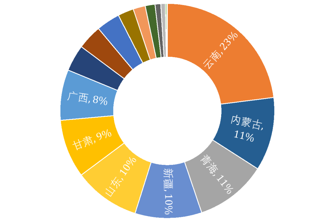 根据安泰科对2025年各地区电解铝产量的预测,以及绿电消费比例要求进行测算,全国电解铝行业需要购买绿证约2.52亿个,主要集中在云南(23%)、内蒙古(11%)、青海(11%)、新疆(10%)、山东(10%)等产量大或绿电消费比例要求高的地区。