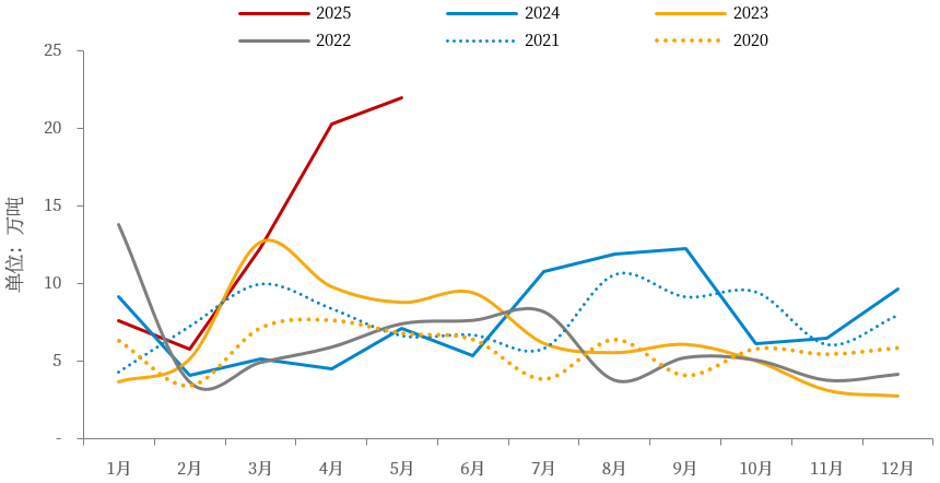 截至6月末,美国显性铜库存约为21万吨,相较于3月初增加近12万吨,非美地区铜库存约为28.5万吨,较3月初下降近40万吨。考虑到二季度正值国内消费旺季,叠加铜价大幅下跌、新能源抢装等事件刺激国内下游需求,若剔除消费端的影响,1-5月国内净进口同比减少约26万吨,即海外贸易流发生改变后带来的直接影响。