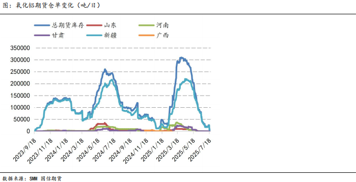 且随着氧化铝内外价差收窄,进口氧化铝流入存在潜在可能性,叠加国内氧化铝需求具有瓶颈,出口需求边际降低,亦再度强化供应过剩的预期。据海关总署数据显示,2025年6月份中国出口氧化铝17.1万吨,环比下降17.7%,同比增长8.8%;6月进口氧化铝10.1万吨,环比增长50%,同比增长168.4%。氧化铝供应放量叠加需求边际下滑的预期,使得供应过剩的压力长期存在。另外,铝厂氧化铝库存也呈现累库状态,高价接货意愿较弱,也将成为价格的限制性因素。